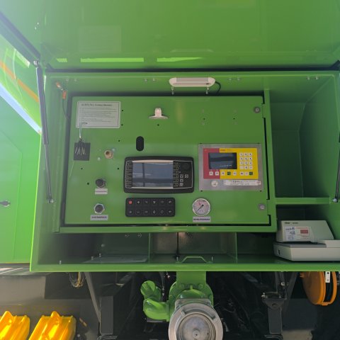 - CAN-Bus - System mit den folgenden Funktionen: Visualisierung Klappenöffnungswinkel, Bedienung Arbeitsscheinwerfer, Flash Lights und des pneumatischem Klappgeländers. Anzeige Behälter- und Leitungsdruck, Bedienung der Oberluftleitung und Behälterentlüftung. Bedienung der Motorsteuerung bestehend aus Motor Start & Stopp, Nebenantrieb Ein & Aus, Drehzahl Auf & Ab. Speicherung von fahrerspezifischen Ausblasparametern, Entladen mit Gewichtsvorgabe, Ausgrenzen von Kammern beim Saugbetrieb.
