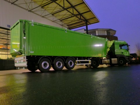 - Hydraulisch betätigte Abschiebewand und Heckklappe